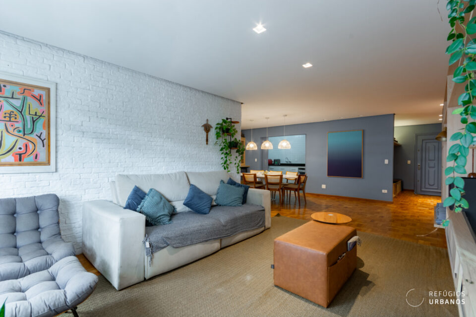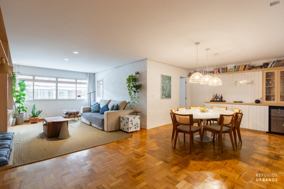 Este apartamento reformado em Pinheiros com 156 m² muito bem distribuídos, é daqueles que, logo ao entrar, entregam uma sensação rara: a de que aqui cabe tudo o que você precisa — e ainda sobra respiro.