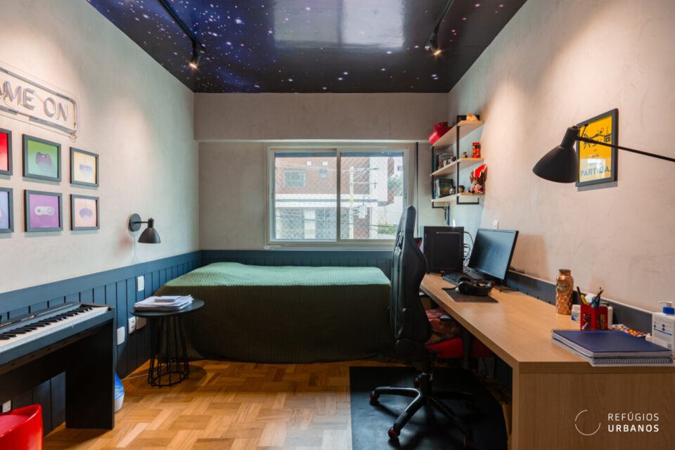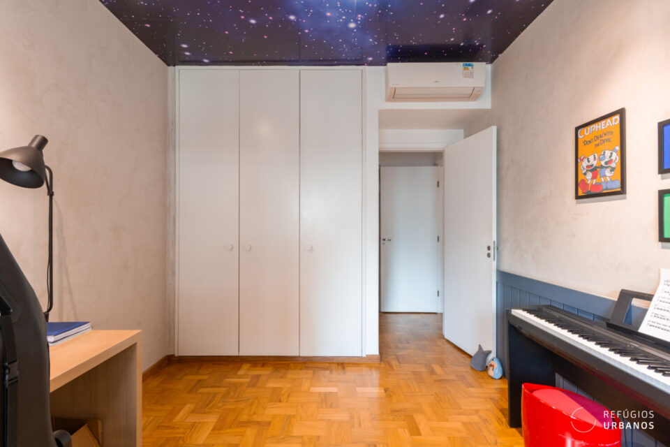 A segunda porta, por sua vez, funciona como uma barreira acústica real. Ou seja, ela ajuda a abafar sons e garante mais privacidade no dia a dia. (Atenção, famílias: dá para chamar os amigos e ainda garantir o sono tranquilo das crianças.)
