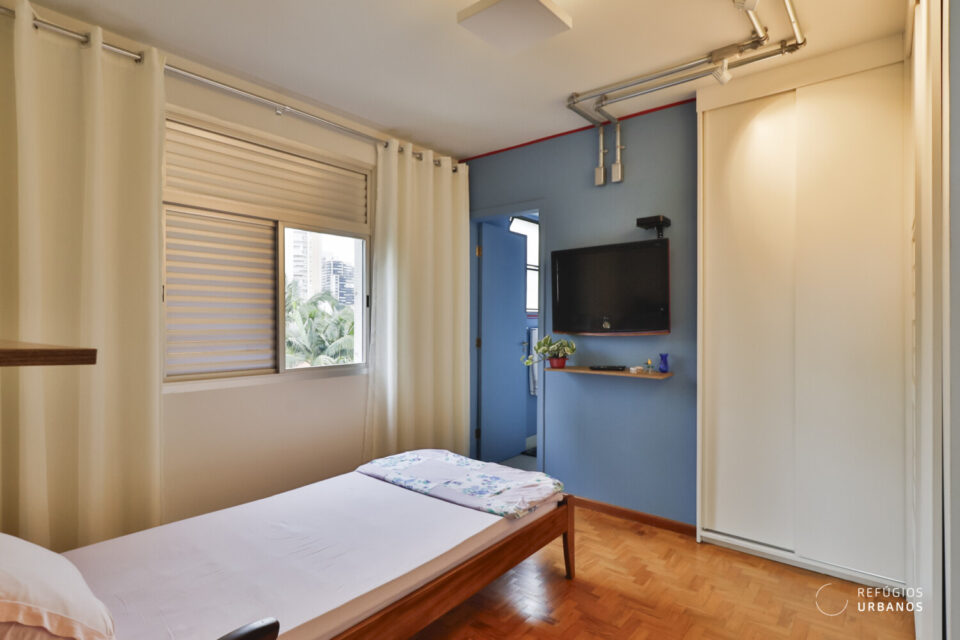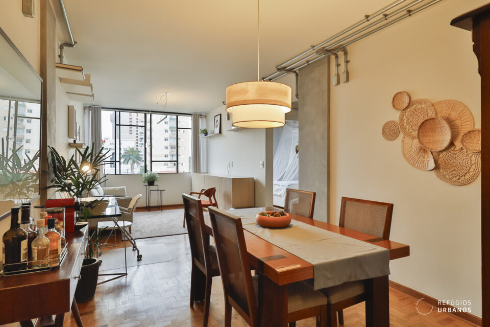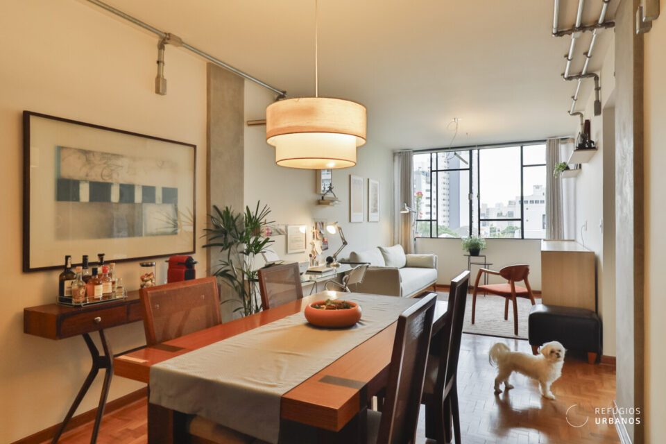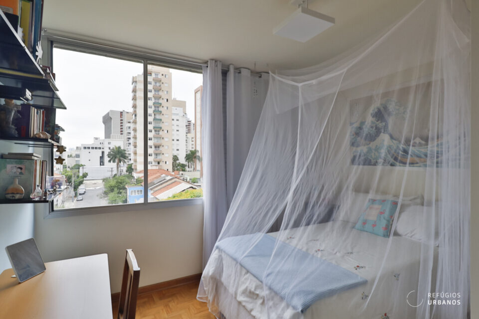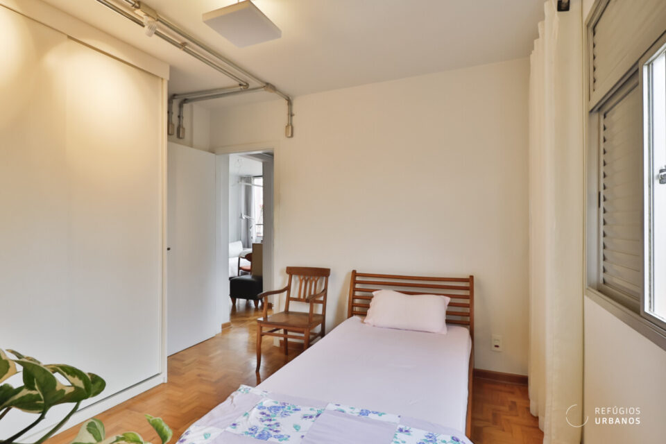 Sabe aquele lugar que te faz suspirar e pensar: “Um bom lugar para ler um livro”? É aqui. A planta retangular, clássica da época, foi desenhada para valorizar a luz. Acredite: os janelões amplos inundam o apartamento de sol, criando uma atmosfera deliciosa e acolhedora.