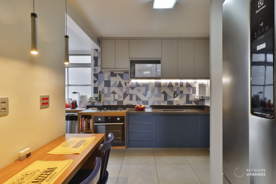 E falando em reforma, a cozinha é prática e já está equipada com forno e cooktop. Ela também ganhou revestimentos novos e modernos, iluminação e marcenaria; ou seja, está completinha!
