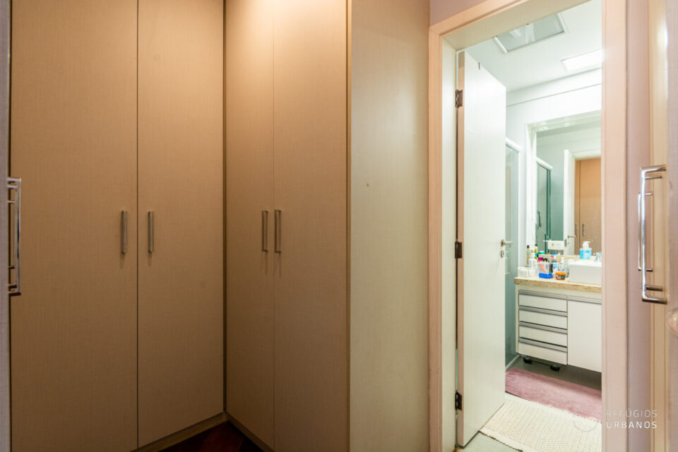 A área íntima é composta por três quartos, sendo uma suíte; todos com ótimos armários, excelente iluminação e ventilação natural.