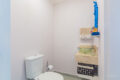Complementando o ambiente de serviço, há uma despensa repleta de prateleiras.