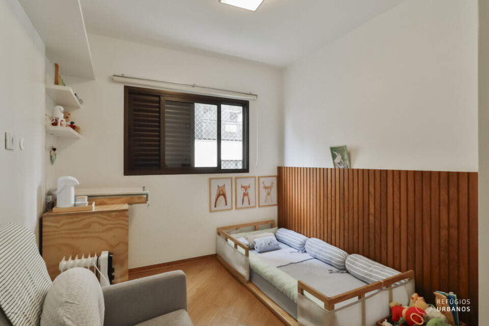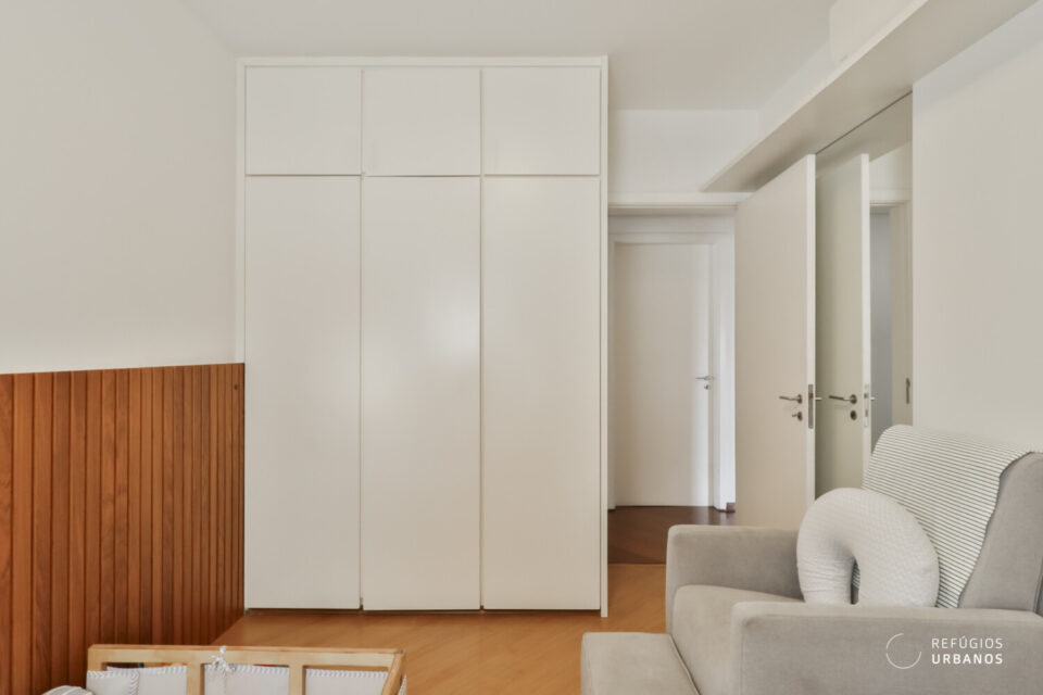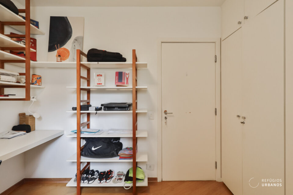 A mesma pegada segue o décor para a área íntima: são três dormitórios, onde primeiro deles, hoje, tem a função de escritório.