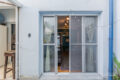 A fachada é alinhada à rua e se integra naturalmente ao entorno. Ao mesmo tempo, é justamente nessa simplicidade que está o charme: proporções equilibradas, linhas retas e uma estética que atravessa o tempo com facilidade.