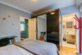 Na área íntima, a suíte guarda um diferencial importante: o garden. Hoje ele funciona como apoio de serviço, porém abre possibilidades interessantes de uso. Ao mesmo tempo, temos um lavabo charmoso e um espaço de despensa que ajuda bastante na organização.