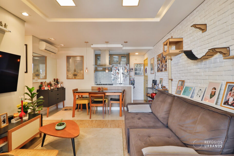 Esse é um apartamento com uma reforma pensada nos mínimos detalhes. Originalmente com 2 dormitórios, a proprietária atual optou por priorizar a amplitude dos espaços.