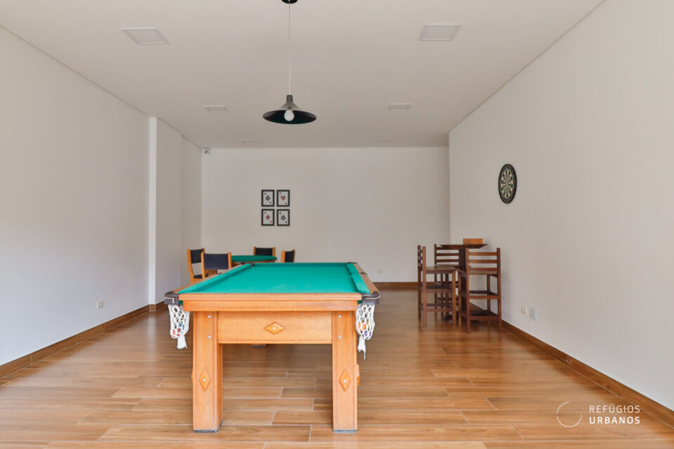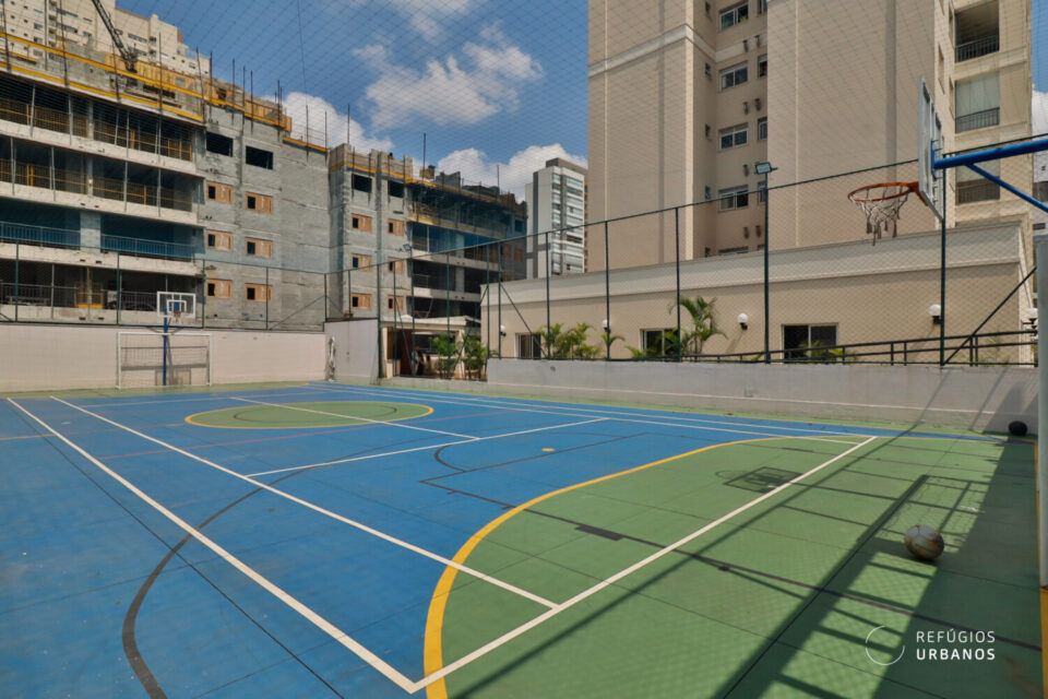 O edifício conta com portaria 24h e lazer completo. Temos piscina, salão de festas, churrasqueira, quadra poliesportiva, salão de jogos, playground e academia.