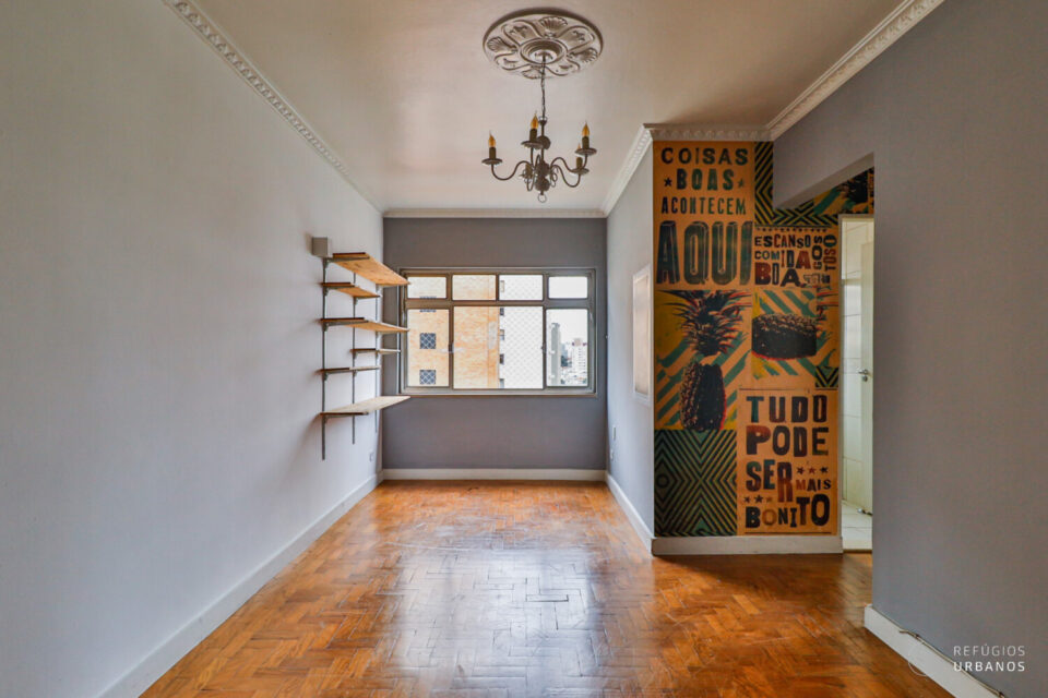 Estamos em um apartamento que reúne o melhor das construções antigas: planta inteligente, janelas amplas, ótima ventilação cruzada e pé-direito alto, ampliando a sensação de espaço e conforto.