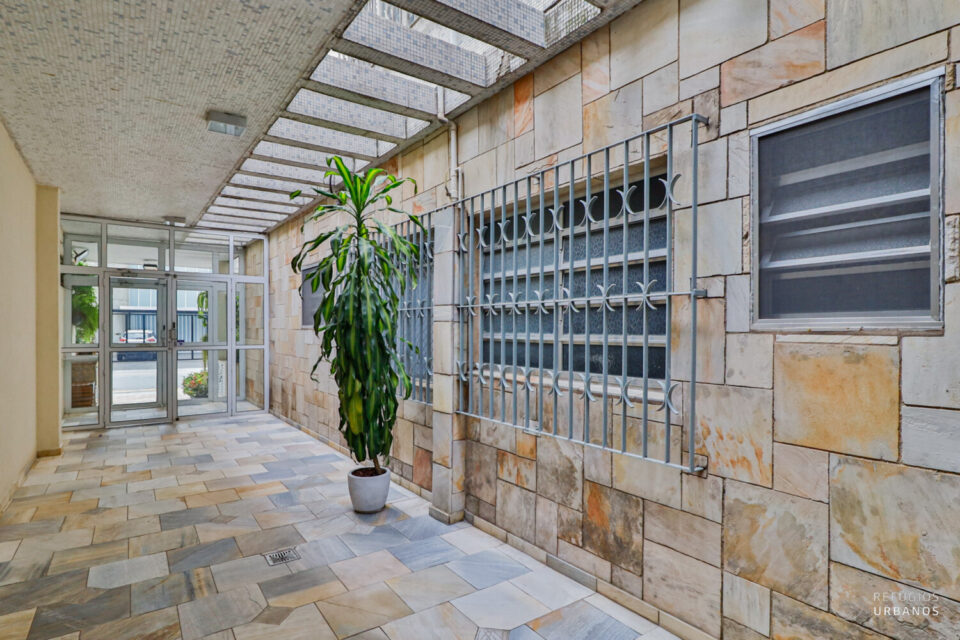 Ao mesmo tempo, o Arinne preserva detalhes originais no hall de entrada, com elementos artísticos e acabamentos que valorizam o design modernista. Por isso, tornou-se um verdadeiro queridinho da região para quem busca apartamento com arquitetura autoral, personalidade e charme atemporal.