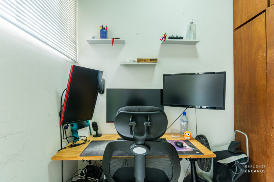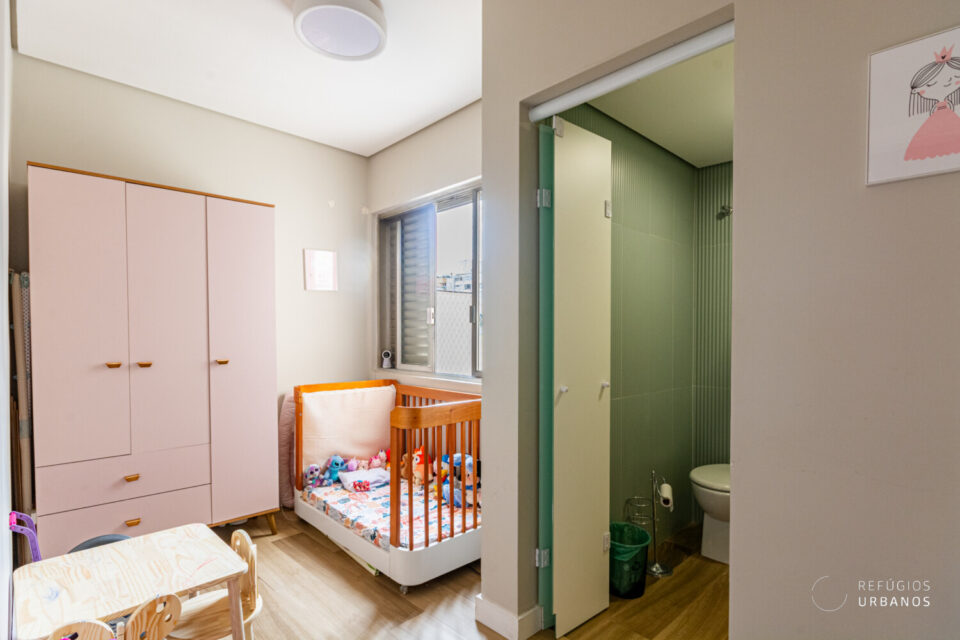 Já o segundo dormitório, na reforma, se tornou uma suíte, também muito bem iluminada e arejada.
