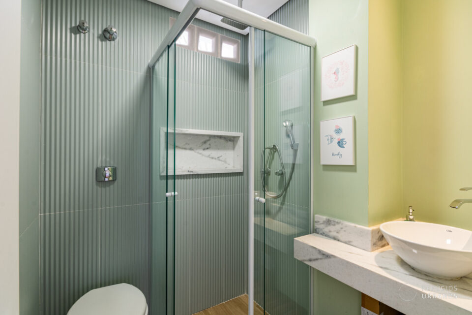 O banheiro social passou por uma reforma recentemente e agora conta com chuveiro a gás.