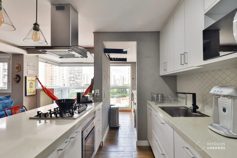 Aliás, a coifa, o cooktop e o forno vão ficar por aqui, ou seja, é só entrar e aproveitar!