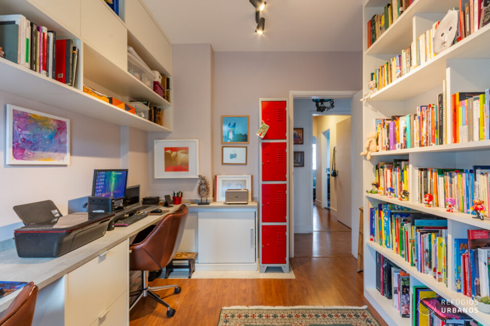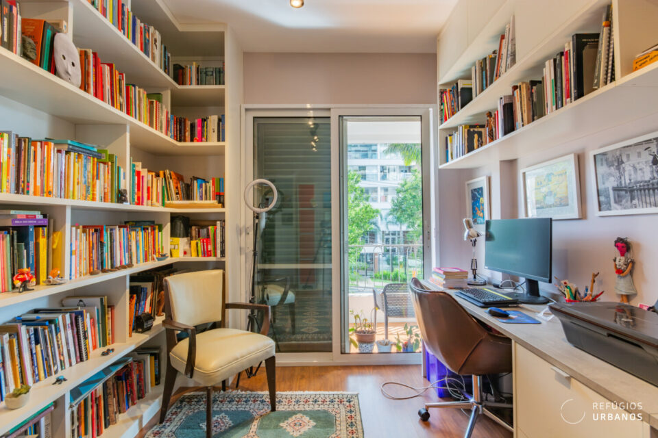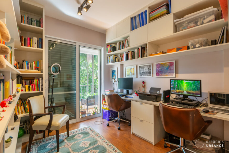 Na parte íntima do imóvel, temos três quartos, sendo um deles uma excelente suíte. O menor deles é usado hoje como escritório.