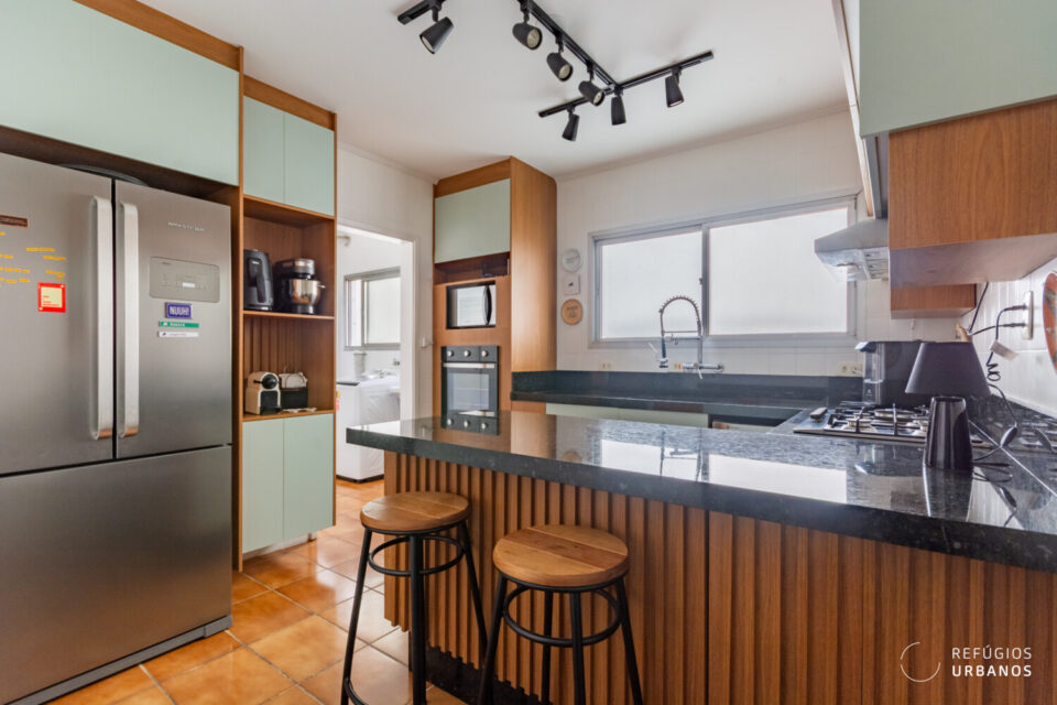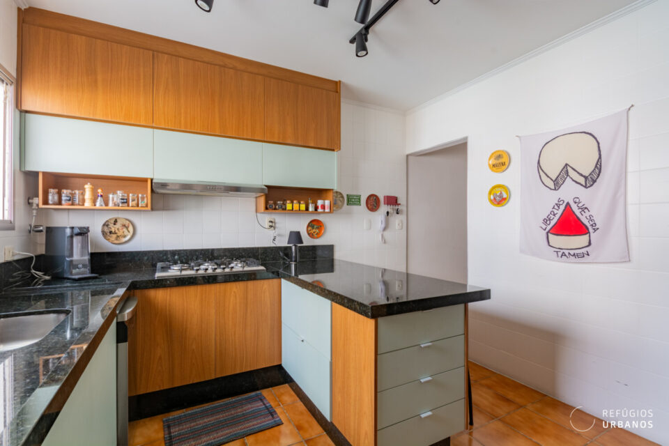 Ao seu lado, temos a cozinha, também espaçosa, e muito bem servida de marcenaria, tudo de ótima qualidade.