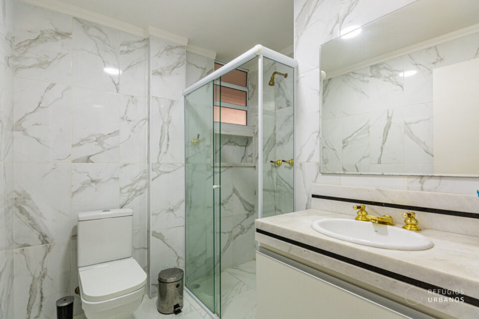 Finalizando, temos mais um banheiro social completo, atendendo aos outros dois quartos.