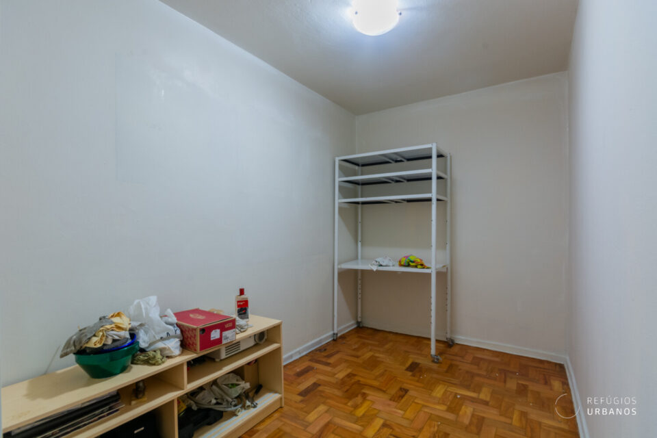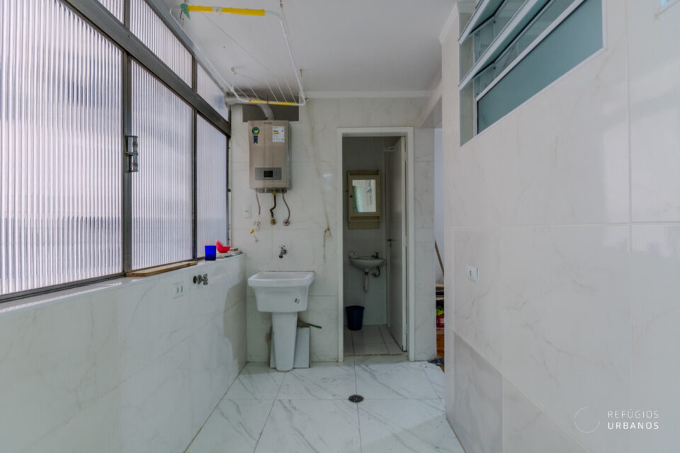 A área de serviços é igualmente ampla, com lavanderia, mais um banheiro e um quarto de apoio de tamanho generoso.