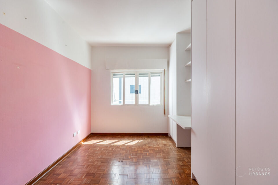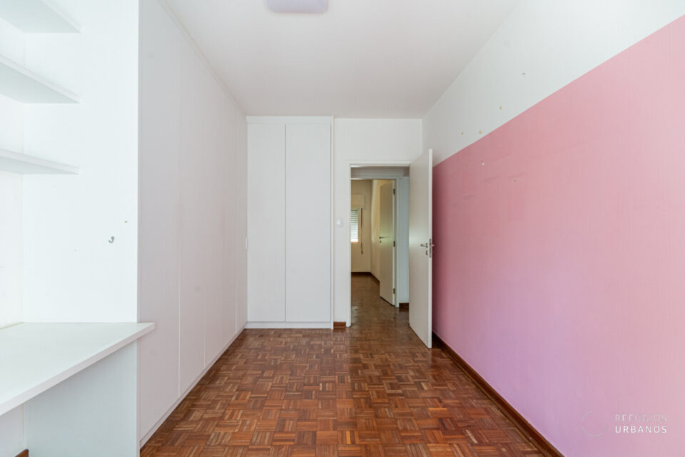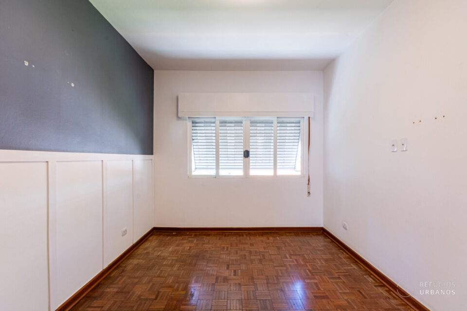 Seguindo pelo corredor, que mantém o charme do piso de taco, chegamos aos dormitórios. Ambos são espaçosos e possuem armários embutidos.