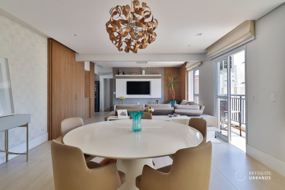 Apresentamos um apartamento com 3 dormitórios e lindamente reformado com uma planta de 157 m² que foi completamente transformada em 2021. A arquiteta Eliana Toledo assinou o projeto, e isso se percebe em cada detalhe, o cuidado com a otimização dos ambientes e as escolhas dos materiais e acabamentos. Tudo impecável.