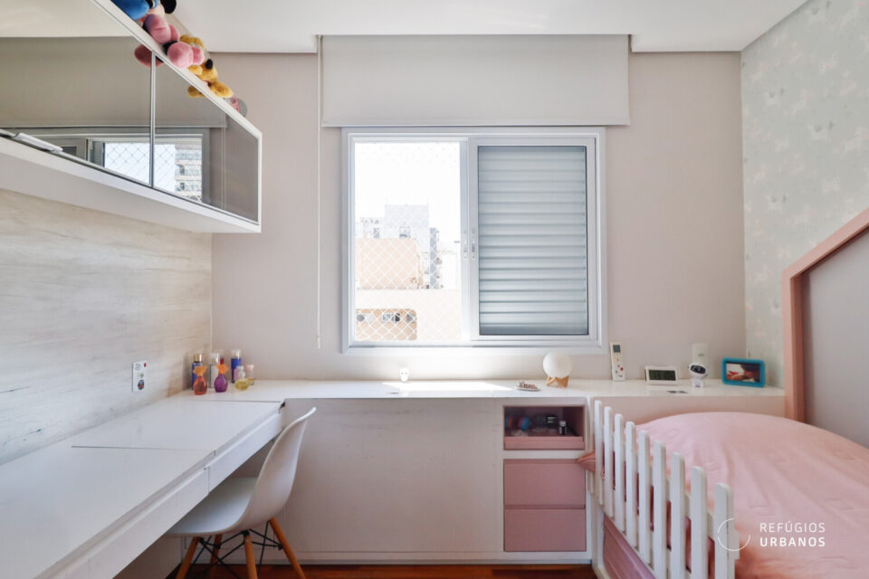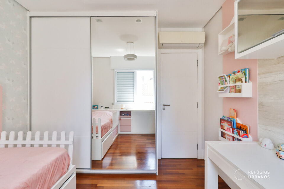 O primeiro dormitório é banhado pelo sol da manhã e equipado com marcenaria sob medida.
