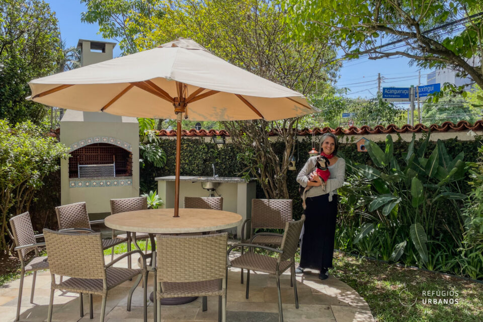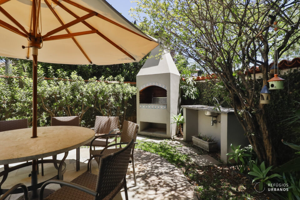 Além disso, o ponto alto desse jardim é a churrasqueira, que convida a celebrar bons momentos ao lado de pessoas queridas, em meio ao verde e à boa conversa.