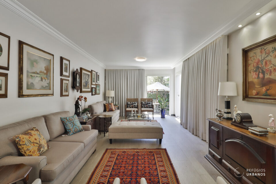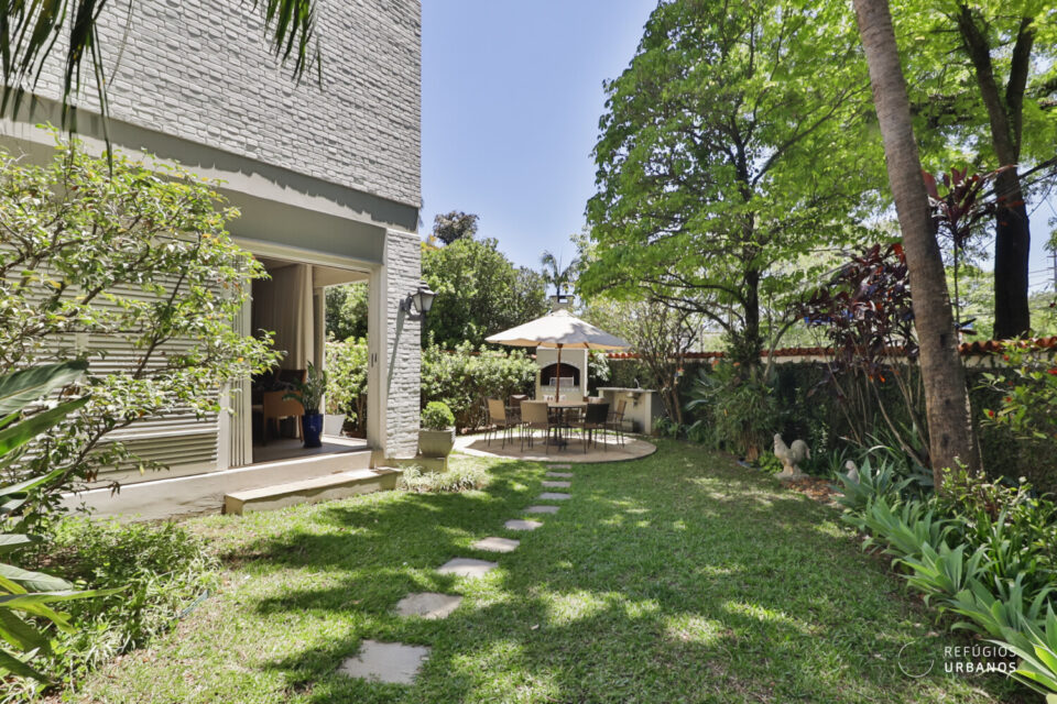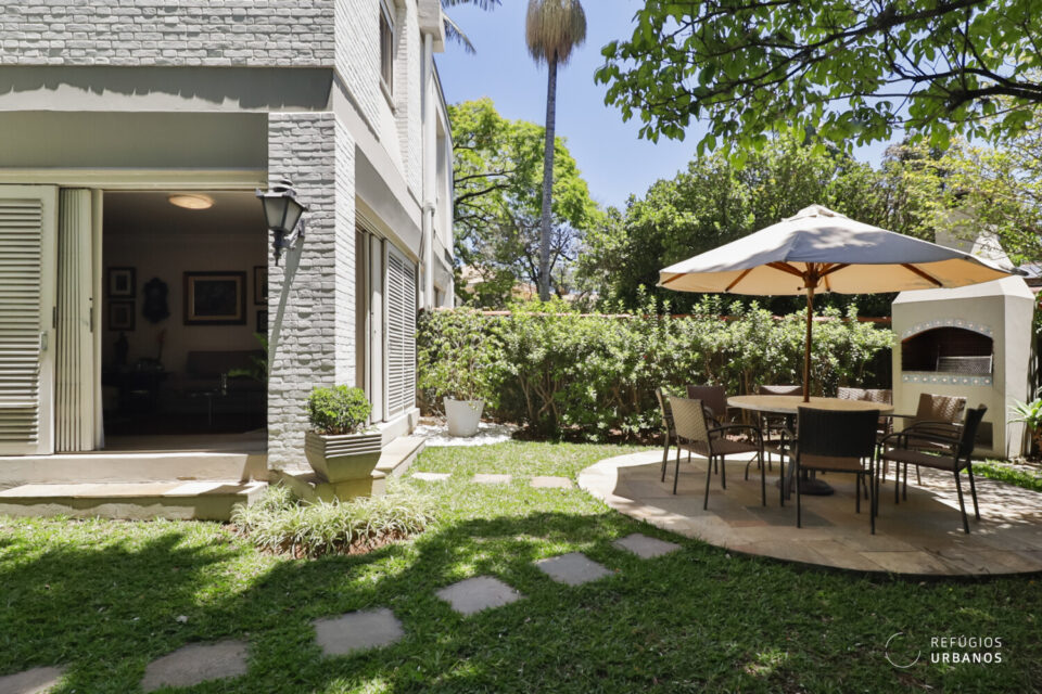 Construída nos anos 1980, essa casa no Butantã traz aquele equilíbrio raro entre solidez e acolhimento. Logo na chegada, o jardim bem cuidado emoldura a fachada e cria um cenário encantador. Assim, quem valoriza o contato com a natureza se sente imediatamente acolhido. Cada canto convida a viver momentos leves, seja tomando um café ao ar livre, cuidando das flores ou simplesmente apreciando o silêncio do entorno.