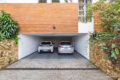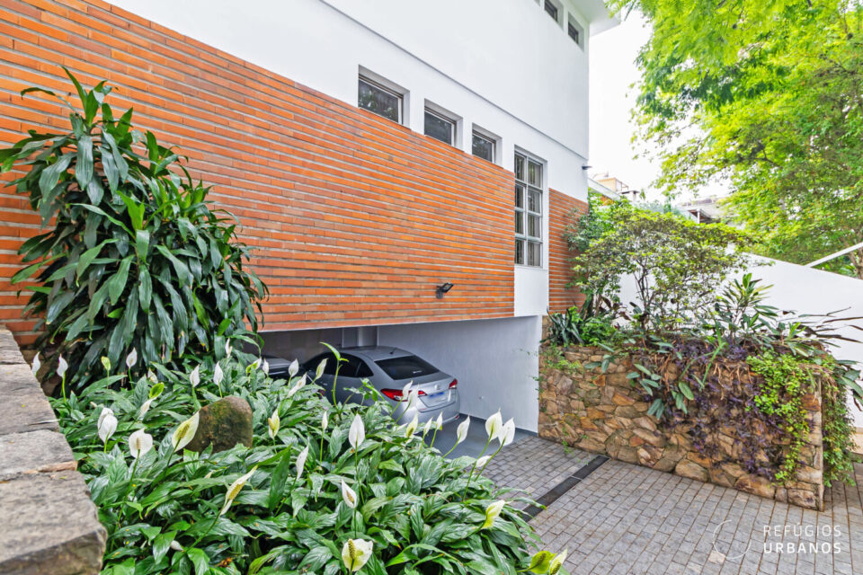 Por fim, no andar de baixo, a  garagem coberta para até quatro carros.