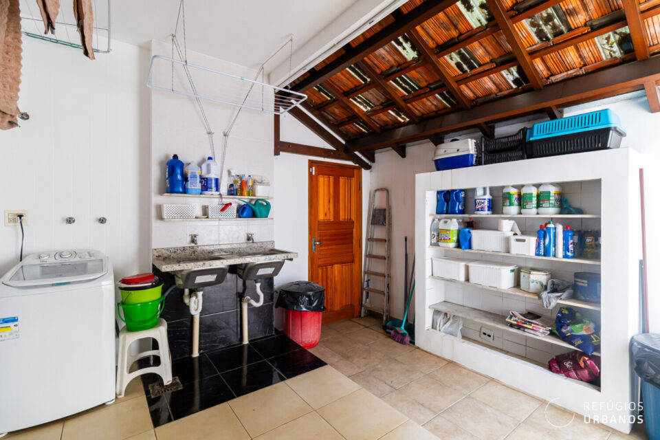 Nos fundos, uma lavanderia ampla com quarto e banheiro de apoio.