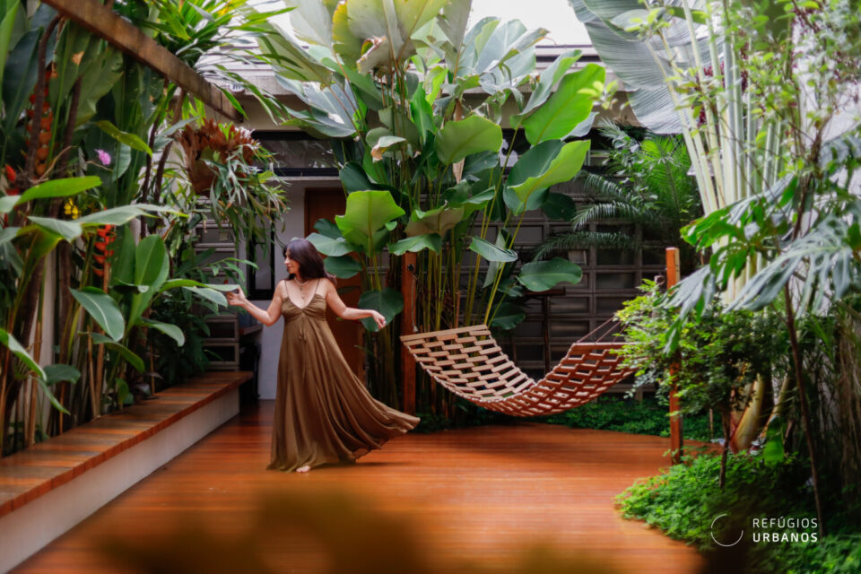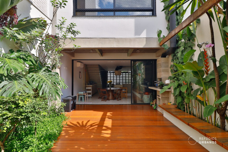 O quintal é um capítulo à parte: deck de madeira, paisagismo impecável e uma atmosfera acolhedora que convida à convivência. É um daqueles espaços que parecem abraçar quem chega.