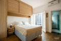 Antes de continuarmos o tour no primeiro pavimento, vamos subir as escadas até o segundo andar, onde encontramos dois quartos amplos, sendo uma suíte já com marcenaria. E para completar, a suíte conta com uma sacadinha deliciosa para deixar o sol entrar!