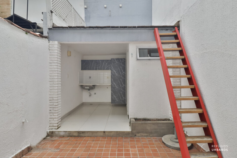 A área externa é um espaço para ficar como você imaginar, com um solário muito aconchegante, lavandeira equipada e um banheiro completo.