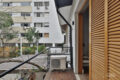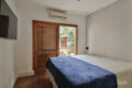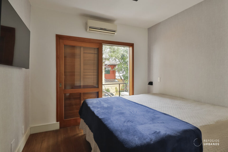 O quarto do casal tem uma varanda super charmosa, com a copa florida de uma árvore em frente como um presente ao acordar.