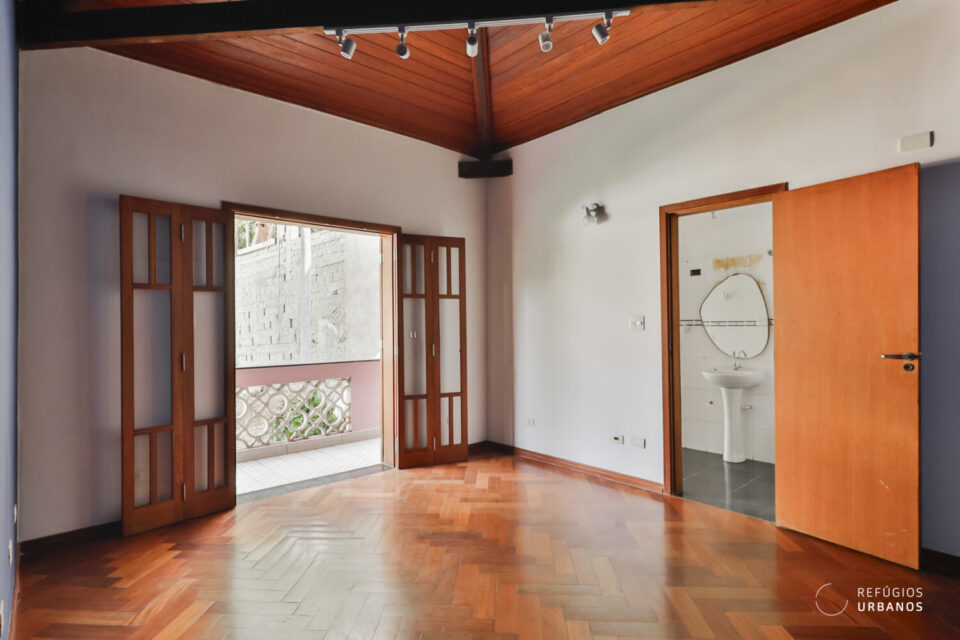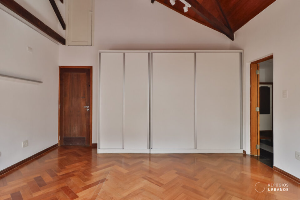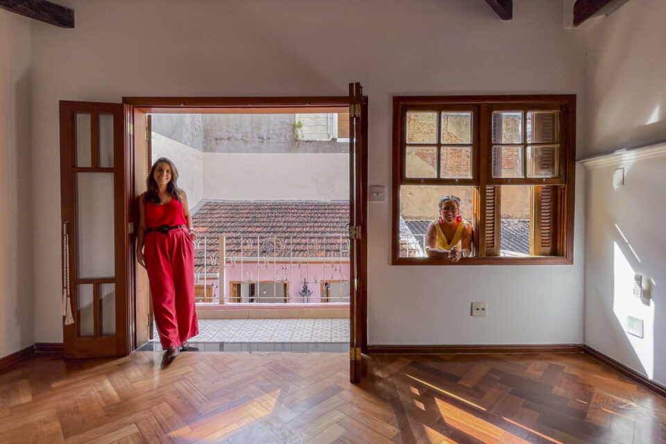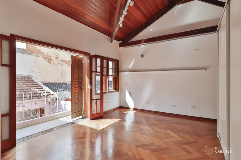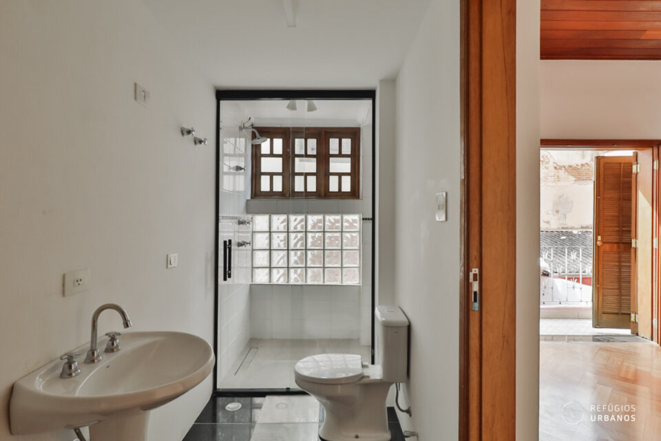 Cada quarto traz sua própria marcenaria e ainda conta com uma varandinha particular, o que deixa tudo ainda mais agradável. Para completar, as esquadrias de madeira reforçam a atmosfera acolhedora, e o piso original de tacos, em excelente estado, amarra todo o conjunto com muito charme.