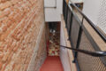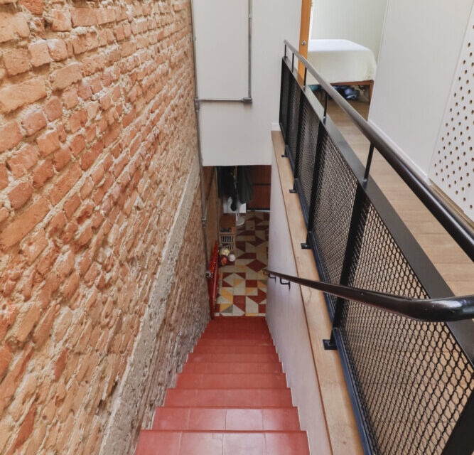 A escada com piso de cerâmica vermelha é um verdadeiro charme!