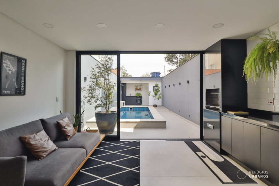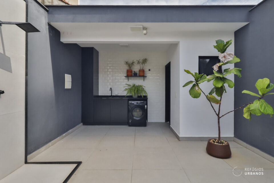 Além disso, a antiga edícula deu lugar a uma lavanderia discreta e funcional, que resolve a vida no dia a dia.