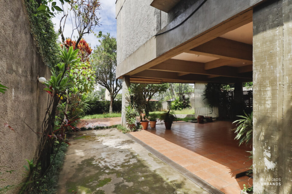Além do verde exuberante, a casa oferece um salão de festas, quarto e banheiro de apoio, lavanderia e pelo menos quatro vagas de garagem.