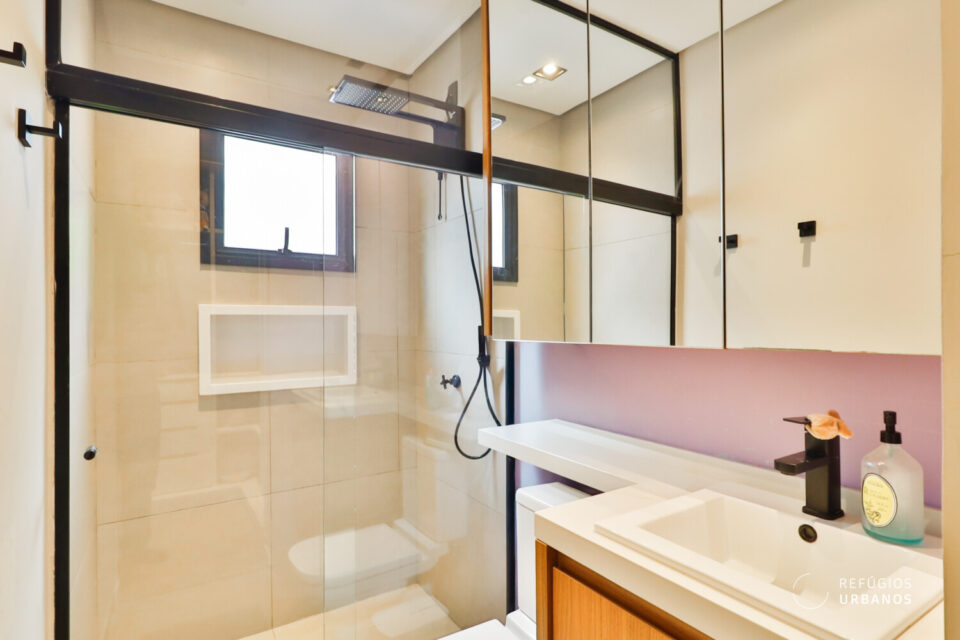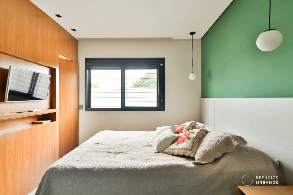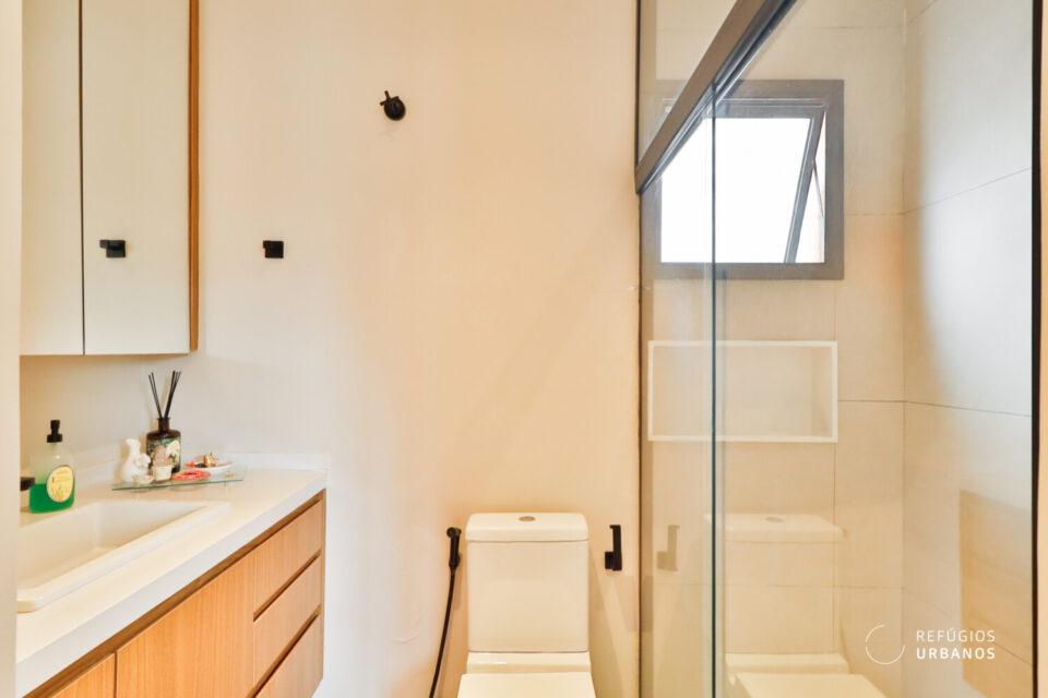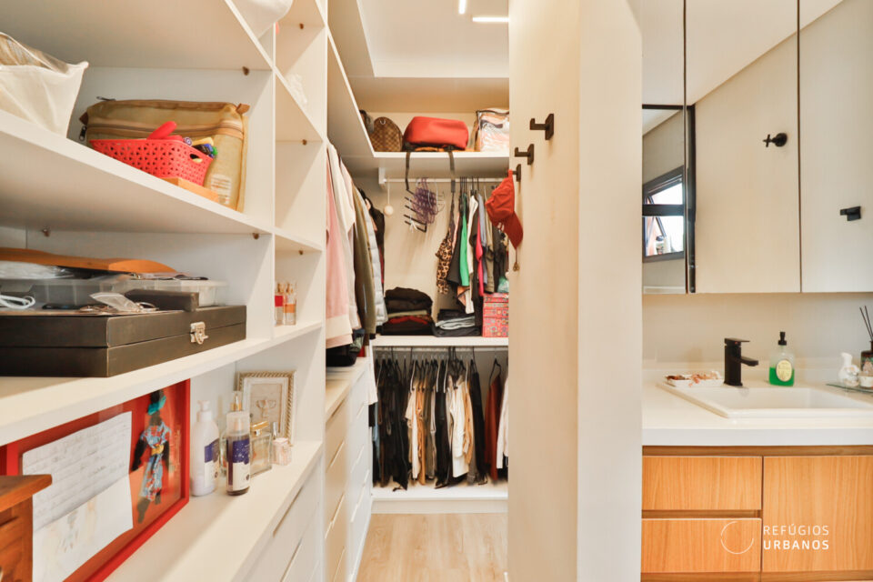 A área íntima conta com duas suítes espaçosas, ambas equipadas com ótima marcenaria que garante organização e funcionalidade. Dessa forma, você tem armários planejados e espaço otimizado em ambos os quartos, proporcionando conforto tanto para os moradores quanto para hóspedes.