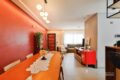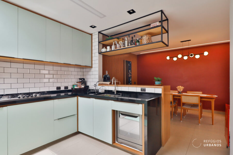 A cozinha, conectada à sala de jantar e a uma despensa, traz praticidade ao dia a dia e facilita o convívio, especialmente ao receber amigos e família.