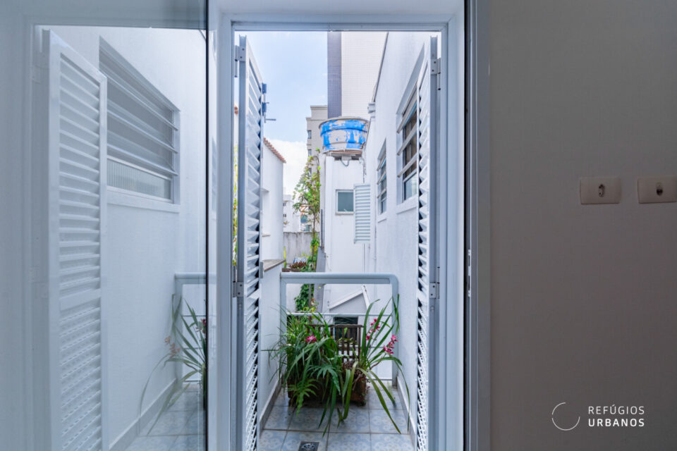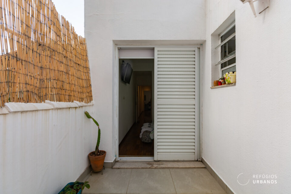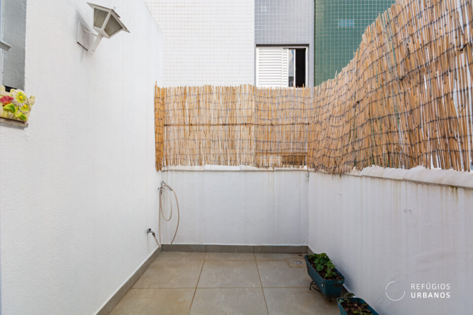 Por outro lado, a segunda parte, menorzinha, se mantém aberta para ver o céu. Ali, um pequeno jardim respira e lembra que a natureza sempre acha um jeito de aparecer, mesmo nos espaços mais compactos.