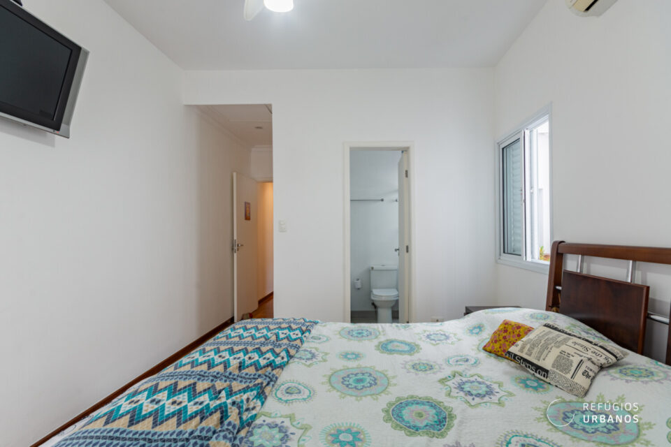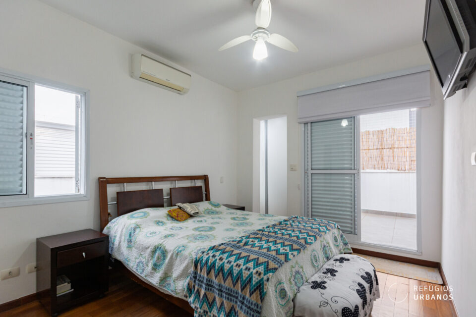 Por fim, a suíte principal fecha o andar com estilo: closet, banheiro bem resolvido, ar-condicionado e uma varanda bem gostosa para tomar um sol, praticar uma yoga ou simplesmente encher de plantas!