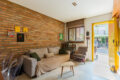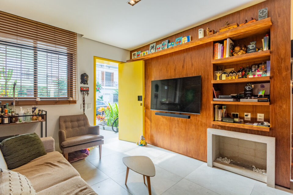 A casa foi completamente reformada pela proprietária, que é arquiteta, e pensada nos mínimos detalhes. Ao entrarmos na vila, logo chama atenção a charmosa casa de porta amarela.