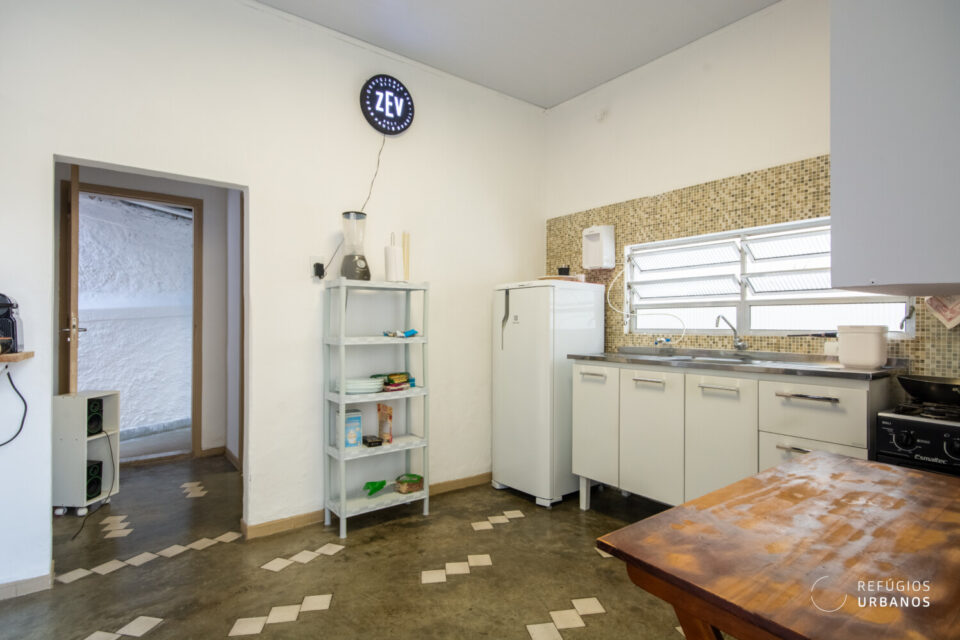 A cozinha fica ao final do corredor. Ou seja,  tem acesso pelo pela área íntima e pelo quintal. Desta forma, tem potencial para ser ampliada ou totalmente integrada com um jardim. Já imaginou?