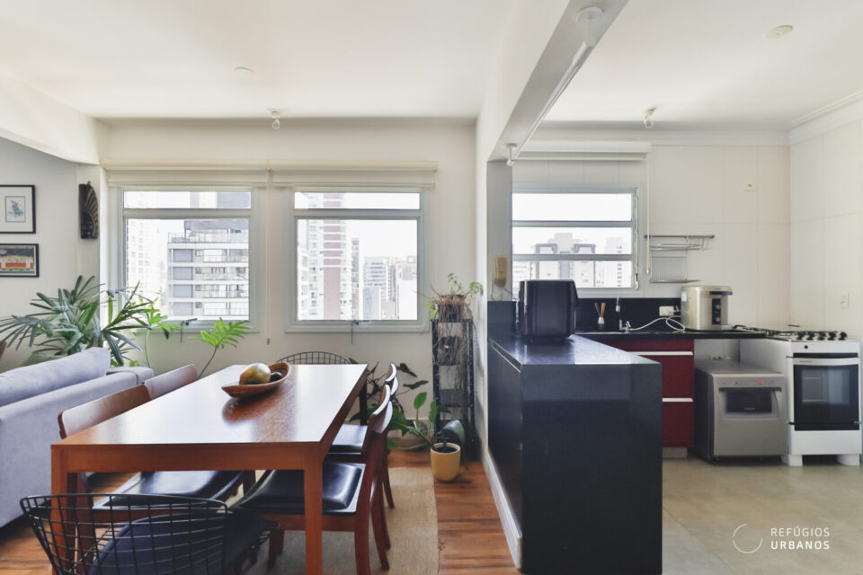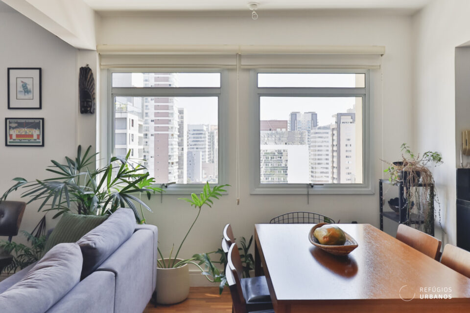 Aliás, o apartamento se destaca pelas ótimas janelas, e a vista, sem dúvida, é um ponto positivo, com um belo recuo e muita luz solar.