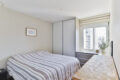 O quarto, por sua vez, tem um ótimo tamanho, com móveis planejados em marcenaria branca e um super janelão, também agraciado com sol da tarde.