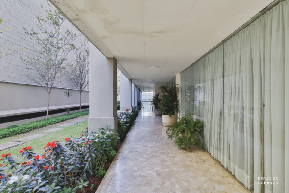 - Edifício com uma pegada retrô com bom recuo da rua, que garante maior tranquilidade, com jardim, salão de festas, bicicletário e portaria 24h;