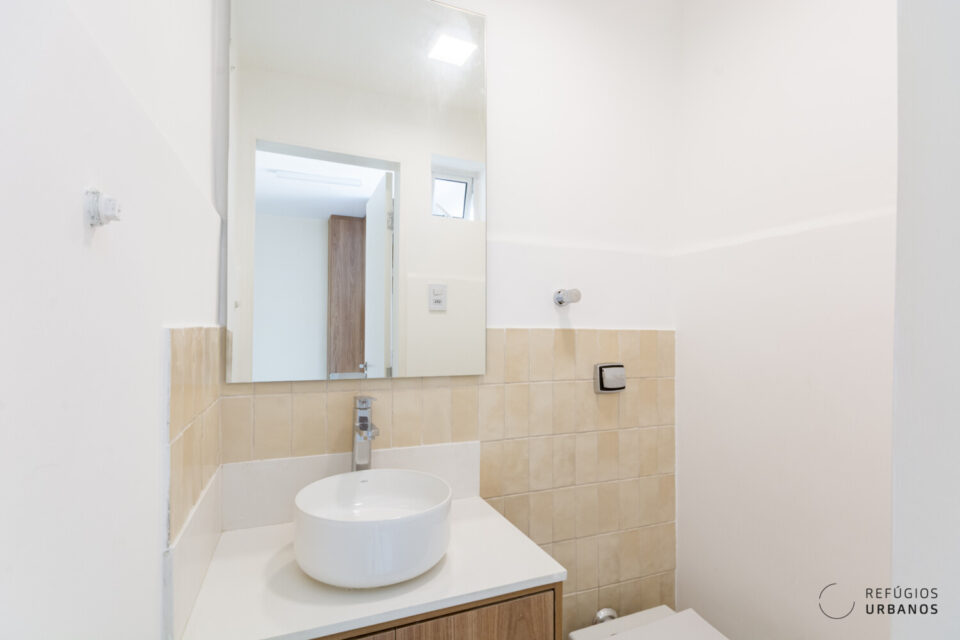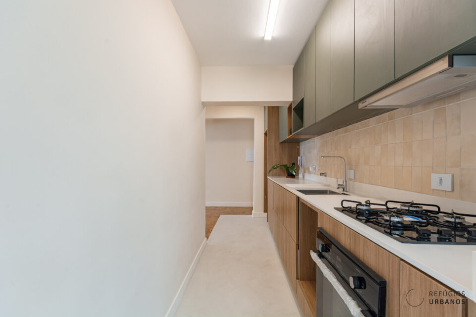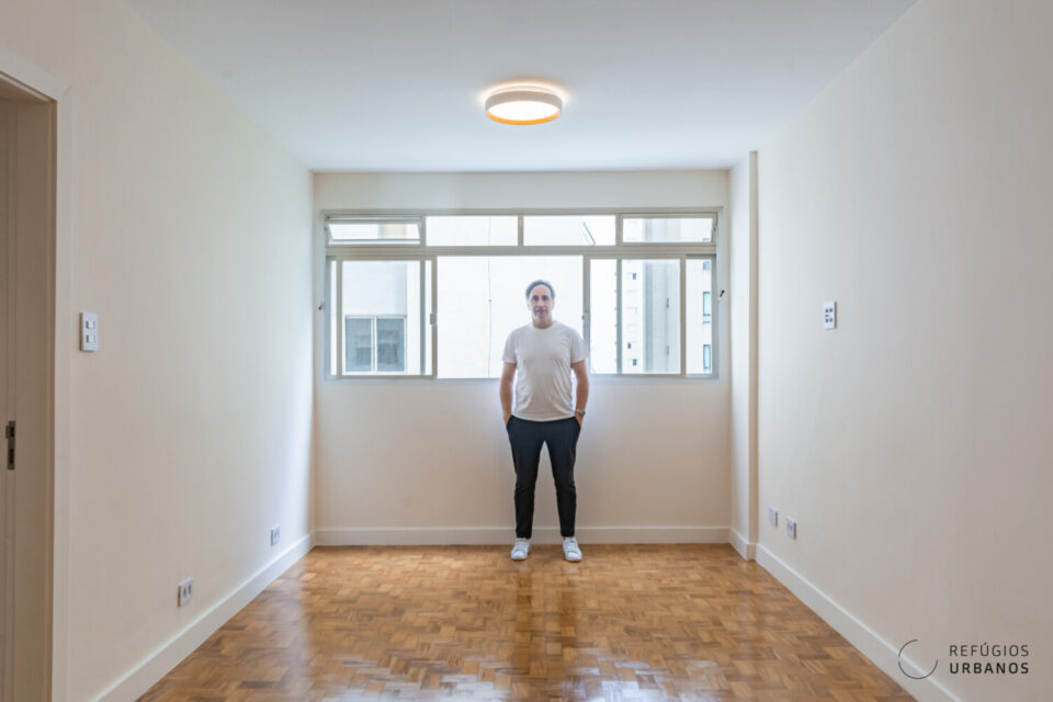 Apartamento reformado de 84,57 metros quadrados de área útil, com 2 dormitórios, 1 banheiro, 1 lavabo e 1 vaga de garagem, em uma rua tranquila do Jardim Paulista.