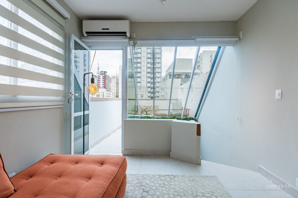 COBERTURA BOUTIQUE DUPLEX NO JARDIM PAULISTA, COM 87,42 M², UM QUARTO, UM BANHEIRO, LIVING NO SEGUNDO ANDAR COM TERRAÇO, E UMA VAGA