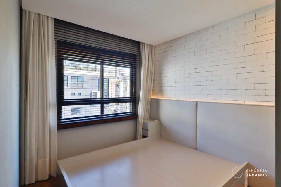 Na área íntima, a marcenaria já está planejada para um quarto de casal e outro com cama de solteiro. Assim, o apartamento está pronto pra receber sua mudança! As persianas de madeira na janela deixam o ambiente sofisticado e aconchegante. Aliás, há muitos detalhes importantes aqui: