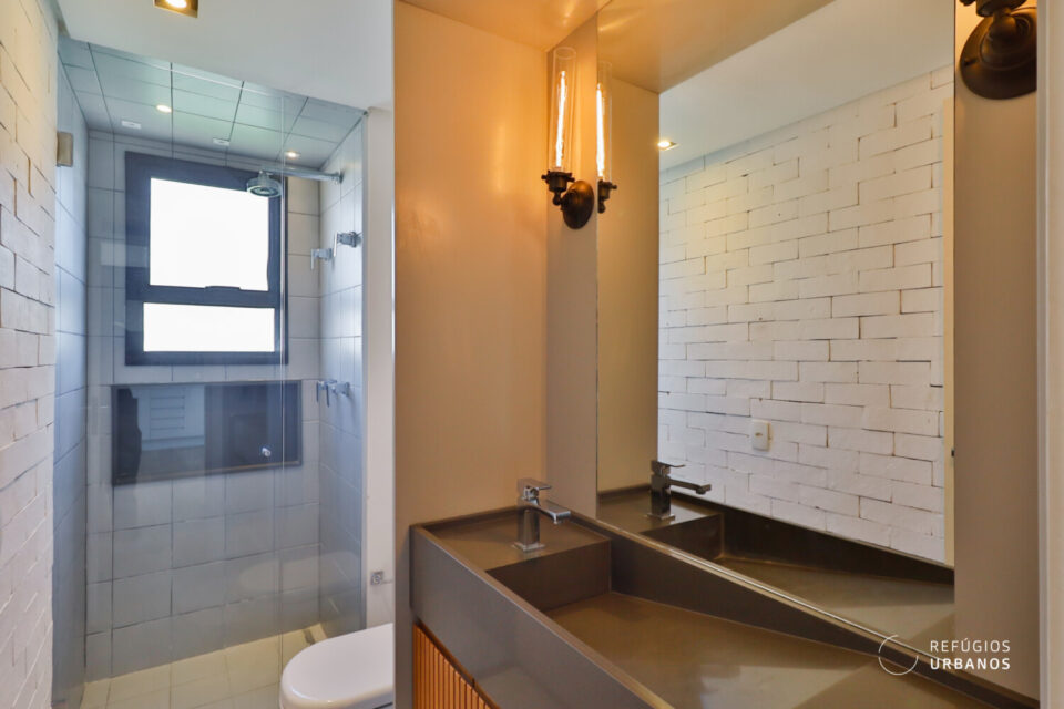 O apartamento tem ótima área social, dois quartos e um banheiro. Ou seja, tamanho ideal para um casal ou uma pessoa que aprecia design e gosta de aproveitar a vivacidade do bairro.
