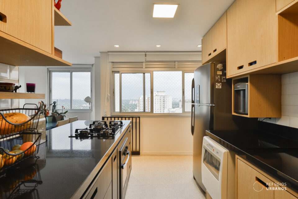 Aqui está também cozinha principal, completamente reformada, muito bem equipada e finalizada com marcenaria sob medida.