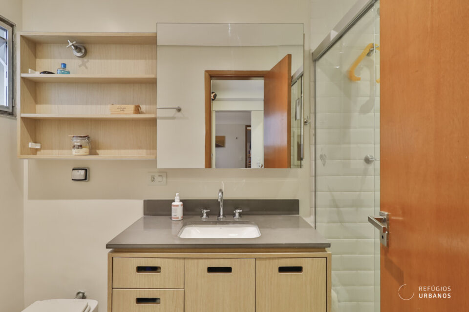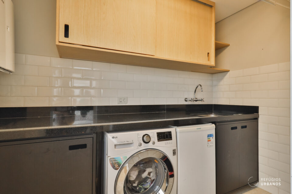 Para completar o pavimento, temos ainda a área de serviço também planejada em marcenaria, garantindo praticidade e organização no dia a dia.
